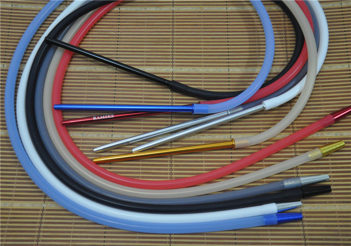Силикон выглядит просто и многим кажется даже вульгарным. Что является поверхностным впечатлением. Умелый дизайн делает из силиконовой трубки настоящее произведение искусства. Кроме того, ничто не мешает создать или приобрести для шланга подходящую обертку из бархата или кожи, если кальян стилизован под старину. А для тех, кто предпочитает курительные устройства в современном стиле, силикон выпускается с лаконичной, близкой к естественной текстурой. Например, эти фирменные изделия из медицинского софт-тач силикона, представленные в большом разнообразии цветов.