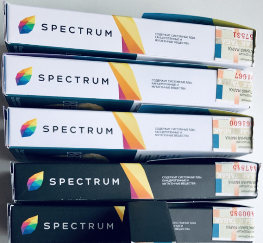 Изначально после раскуривания табачная смесь Spectrum может показаться очень крепкой, но постепенно пользователи к нему привыкают. Производитель получил акцизную марку на свою продукцию.