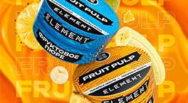 Element FRUIT PULP (ФРУКТОВОЕ ПЮРЕ) — аромат нежного пюре из спелого ананаса и сладкого банана с легким послевкусием сочного яблока.